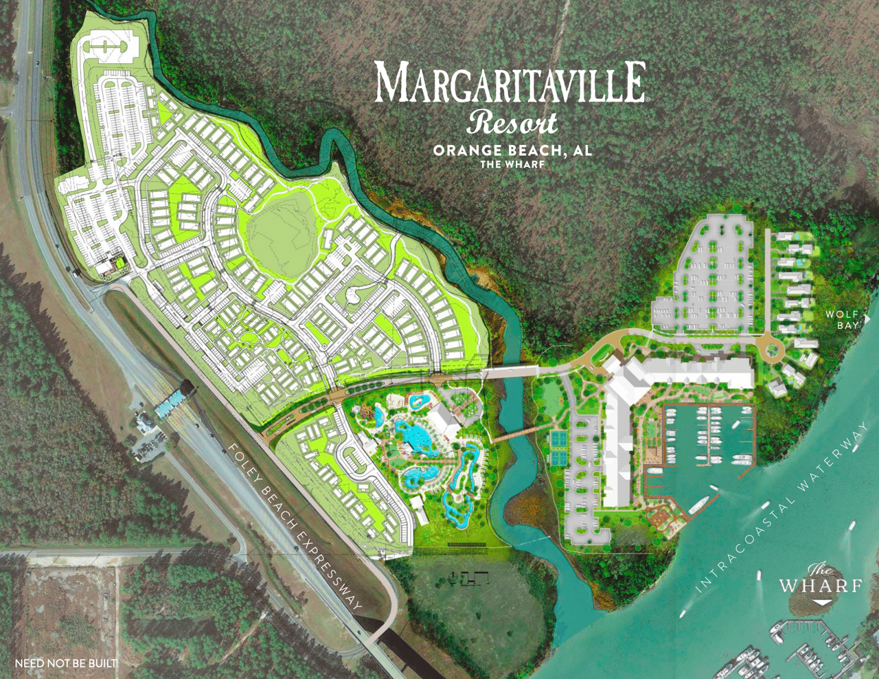 Rooted in the music and coastal lifestyle of the late Jimmy Buffett — who grew up in Mobile and spent childhood summers on Alabama Gulf Coast beaches — Margaritaville Resort Orange Beach at The Wharf is set on an 83-acre waterfront property directly across the Intracoastal Waterway from The Wharf.