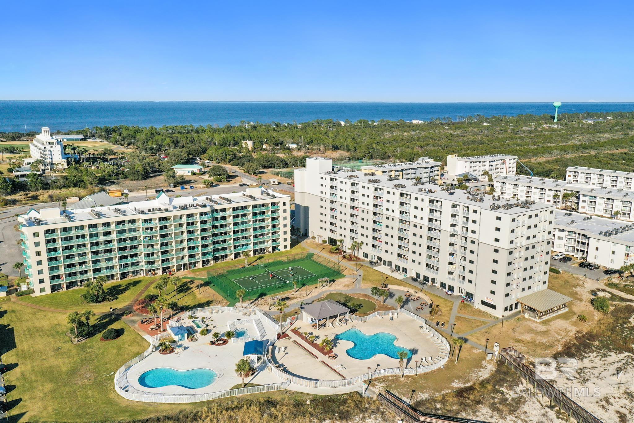 The community offers an impressive array of resort-style amenities designed for year-round enjoyment, including multiple outdoor swimming pools, a large indoor pool, hot tubs, fitness facilities, saunas, tennis courts, pickleball courts, basketball courts, and well-maintained grilling and picnic areas. Direct beach access leads to wide stretches of sugar-white sand, providing residents and guests with plenty of room to relax, walk the shoreline, or enjoy stunning Gulf sunsets without the crowds often found in more central areas.